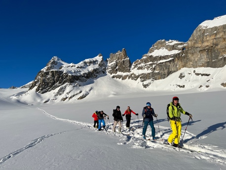 An experienced mountain guide will familiarize you with everything that goes into ski touring: how to use touring skis, skins, running bindings and an avalanche transceiver (LVS), an introduction to skiing technique in deep snow and, of course, running technique with skins.