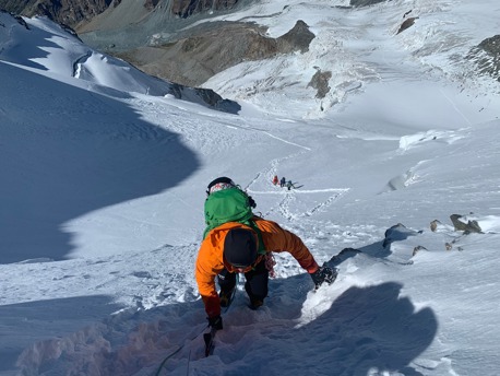 Day 3 Over the Naso 4272m, Balmenhorn 4167m and Vincentpyramid 4215m to the Rifugio Mantova (3400m).